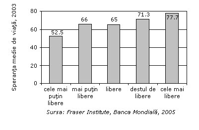 În acelaşi sens, se poate constata că speranţa de viaţă este cu peste 25 de ani mai mare în statele în ţările cu cel mai ridicat nivel de libertate economică, faţă de ţările cu cel mai redus nivel.
