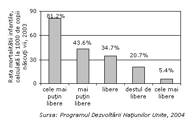 Această corelaţie permite înţelegerea faptului că mortalitatea infantilă este mult mai redusă în ţările cu un nivel mai ridicat de libertate economică.