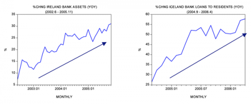 Ca răspuns la aceasta, împrumuturile bancare au arătat o vizibilă creştere, rata anuală de creştere a activelor băncilor irlandeze crescând de la 7,4 % în iunie 2002 la 31% în noiembrie 2005. În Islanda, rata anuală de creştere a împrumuturilor bancare către rezidenţi a crescut de la 26,5% în septembrie 2004 la 57,8% în aprilie 2006.