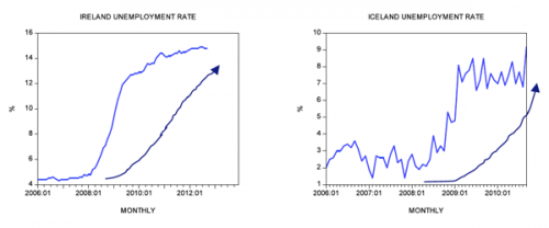 Totuşi, este clar că situaţia economică a Islandei este mai puţin rea decât cea a Irlandei şi acest fapt este datorat în mare parte strategiei Islandei de a-şi lăsa băncile să falimenteze.
