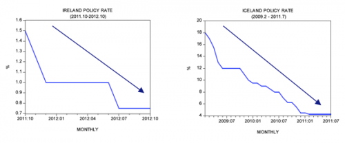 Dacă economia Islandei va arăta o regenerare sănătoasă, precum au sugerat anumiţi experti, depinde de politica monetară a băncii centrale a Islandei. Noi considerăm că acelaşi lucru este valabil şi în cazul Irlandei (este necesar să inchidem orice portiţă ce poate contribui la creşterea masei monetare).