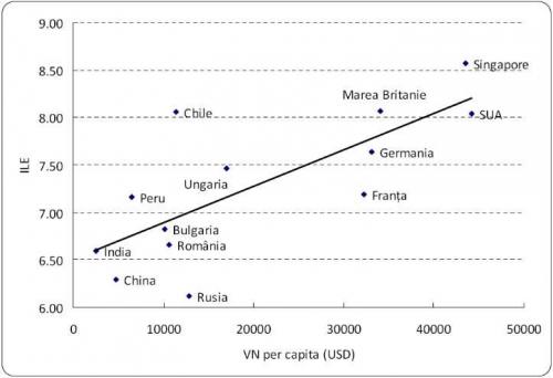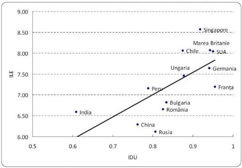 Sursa: calcule proprii realizate pe baza datelor preluate din statisticile United Nations Development Programme, www.undp.org, şi Fraser Institute, www.fraserinstitute.org