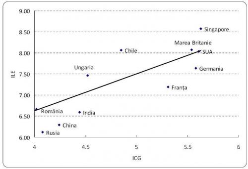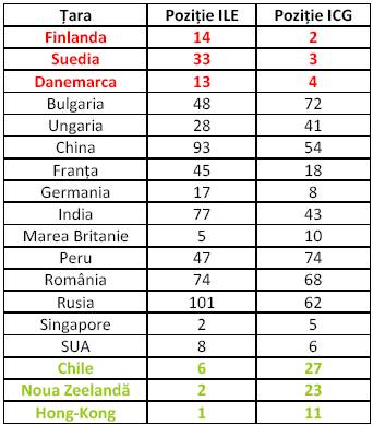 Aceleaşi deficienţe cuprinse în ICG explică şi evoluţiile de la polul opus. Mai exact, ţările cu ILE ridicat deţin poziţii mai slabe în clasamentul ICG. Din acest motiv, apreciem că ICG este un instrument totuşi limitat pentru a exprima gradul de dezvoltare a unei economii.
