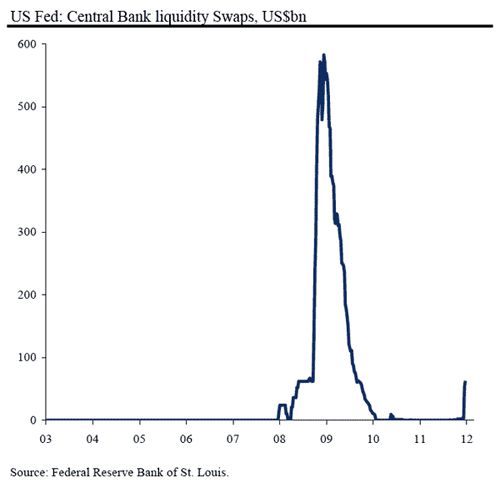 Această evoluţie a determinat băncile centrale importante din lume să coopereaze pentru a preveni o criză de creditare. În 30 noiembrie 2011 Banca Canadei, Banca Angliei, Banca Japoniei, Banca Centrală Europeană şi Banca Naţională a Elveţiei au anunţat că vor pune la dispoziţia băncilor sume nelimitate de masă monetară (lichidităţi) prin acorduri de swap valutare în încercarea de “a susţine sistemul financiar global”[3].